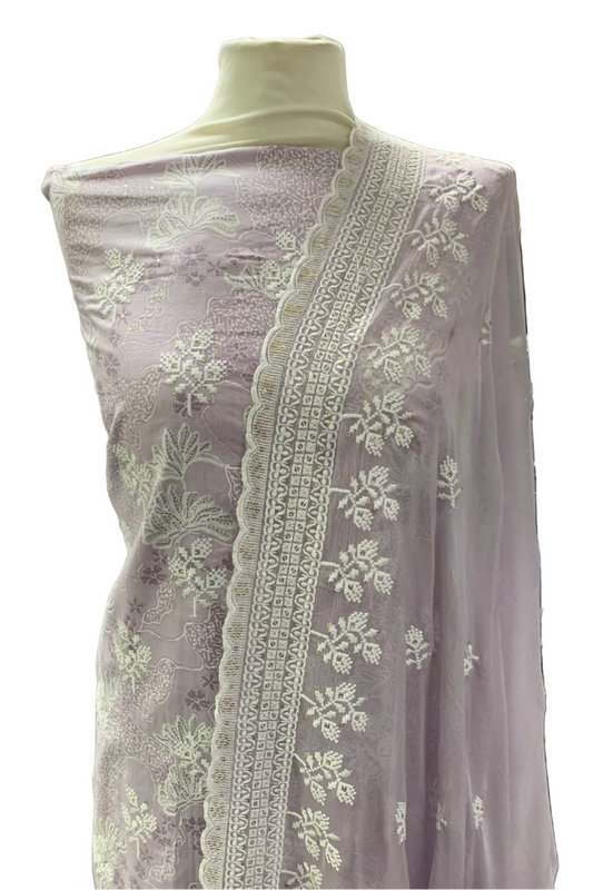 692 Floral Embroidery 4pc Unstitched Chiffon Suit with Diamante