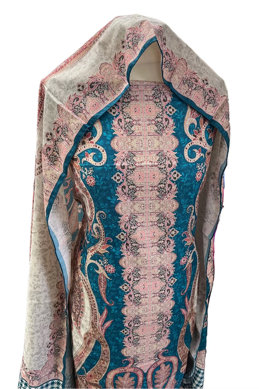RESHAM Paisley Floral Print Unstitched 3pc Pashmina Suit