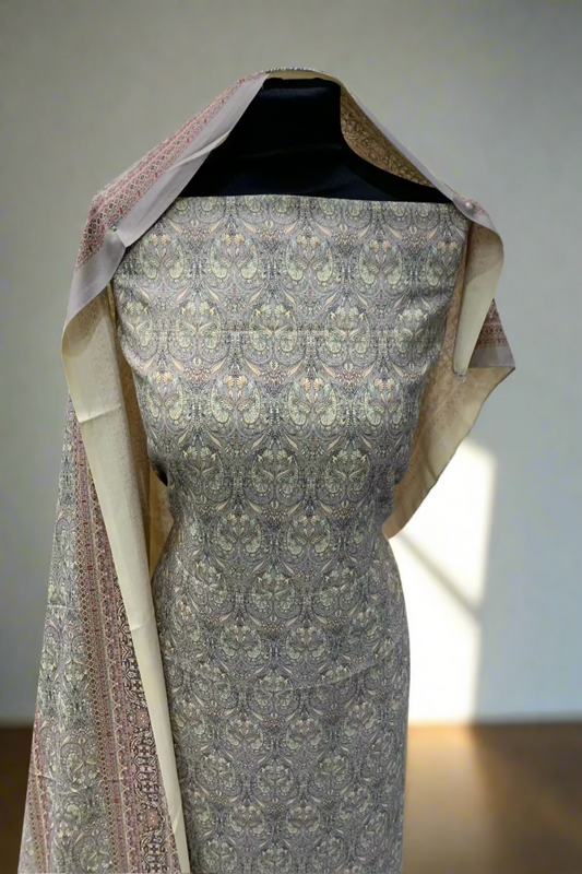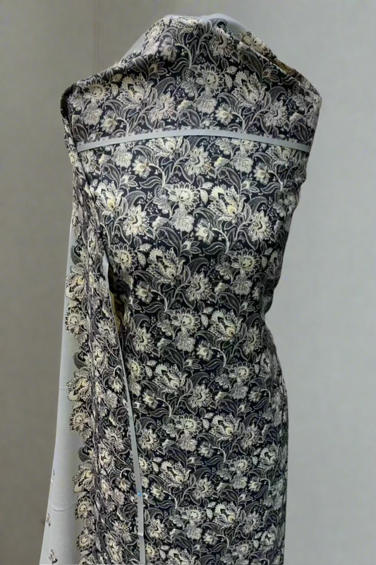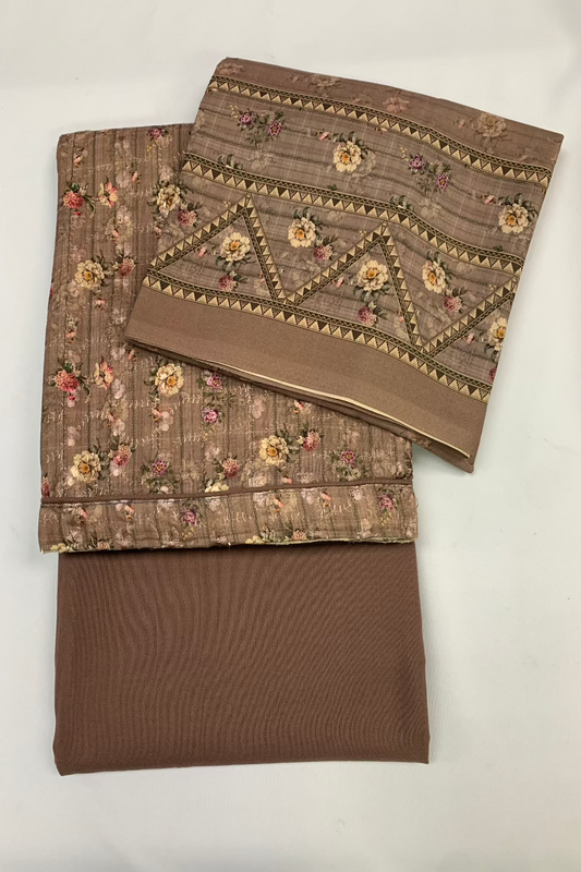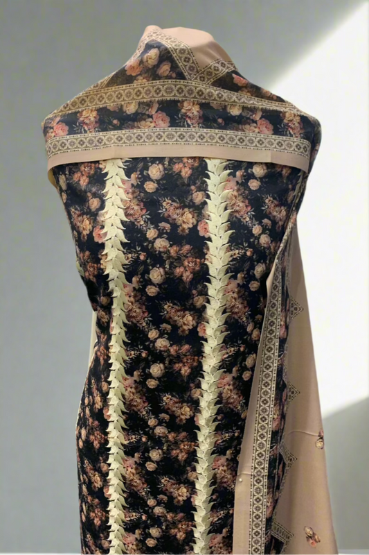 149 Flower Print 3pc Warm Alpine Unstitched Suit with Embroidery Border
