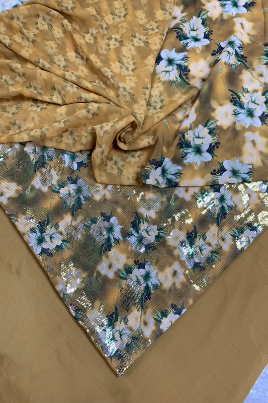 156 Unstitched Ladies Flowers Printed Sequin 3pc Suit