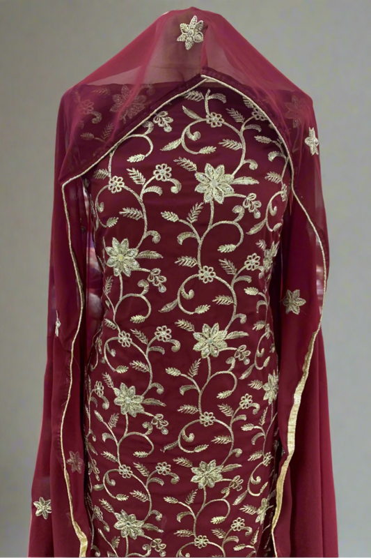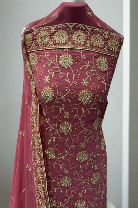 167 Gold Embroidery Georgette 4pc Unstitched Suit
