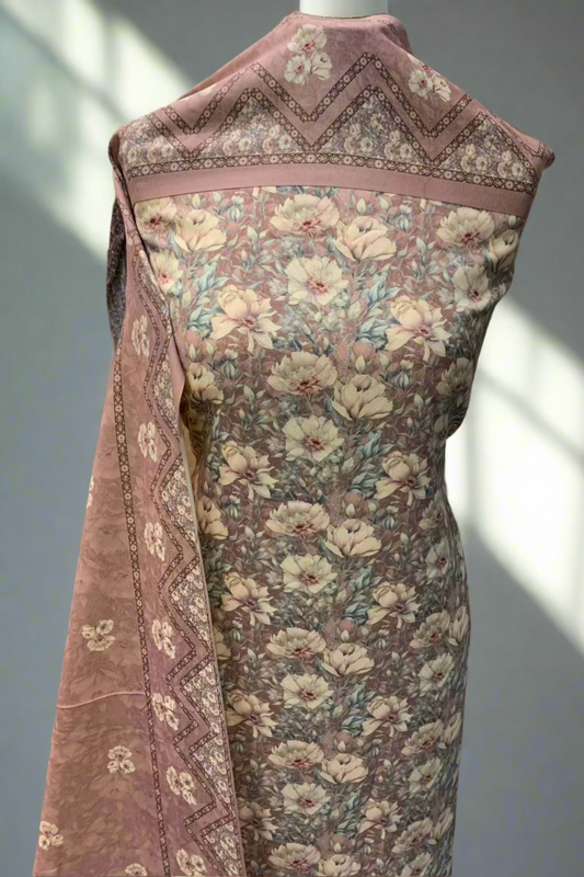 151 Floral Printed Alpine 3pc Warm Unstitched Suit with Border