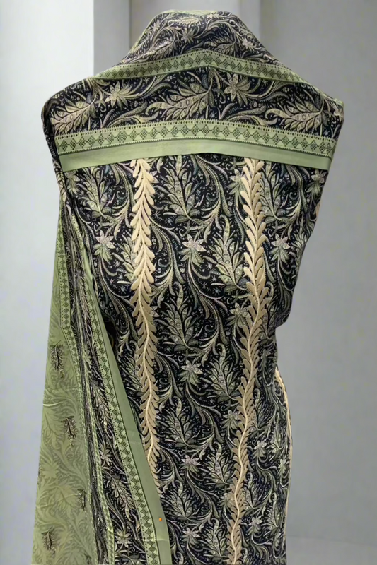 153 Leaf Print Embroidered Alpine 3pc Warm Unstitched Suit