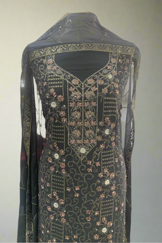 162 Sequin Embroidery Georgette 4pc Unstitched Suit