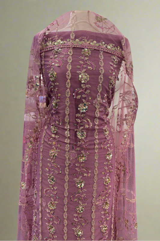 1558 Embroidered 4pc Net Suit with Sequins & Embellishments