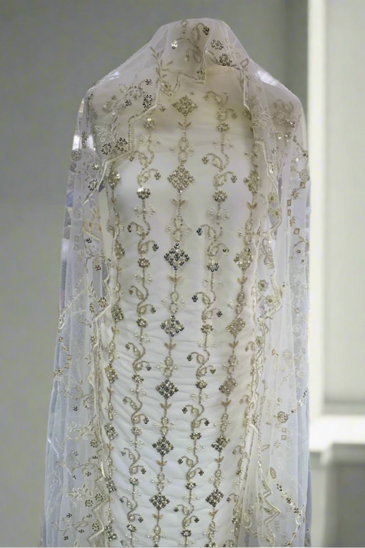 1563 Embroidery & Sequin 4pc Net Suit with Beading