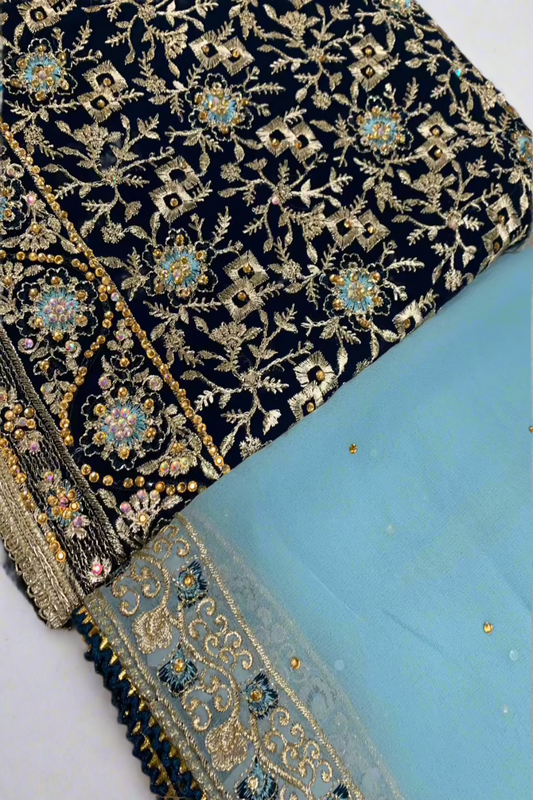 5688 Gold Embroidery Georgette 4pc Unstitched Fancy Suit