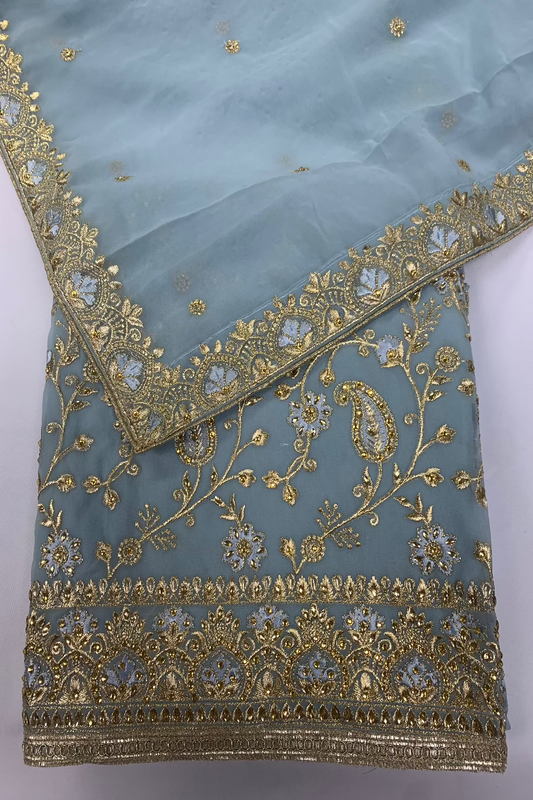 5578 Floral Gold Embroidery Georgette 4pc Unstitched Suit