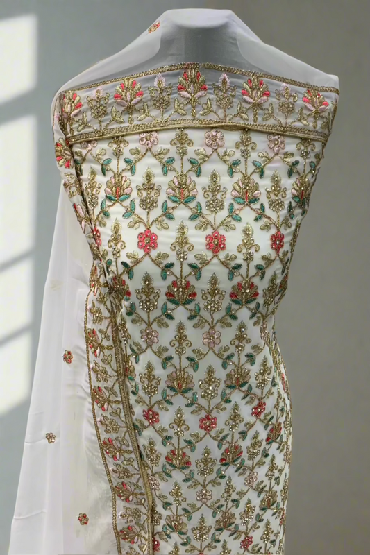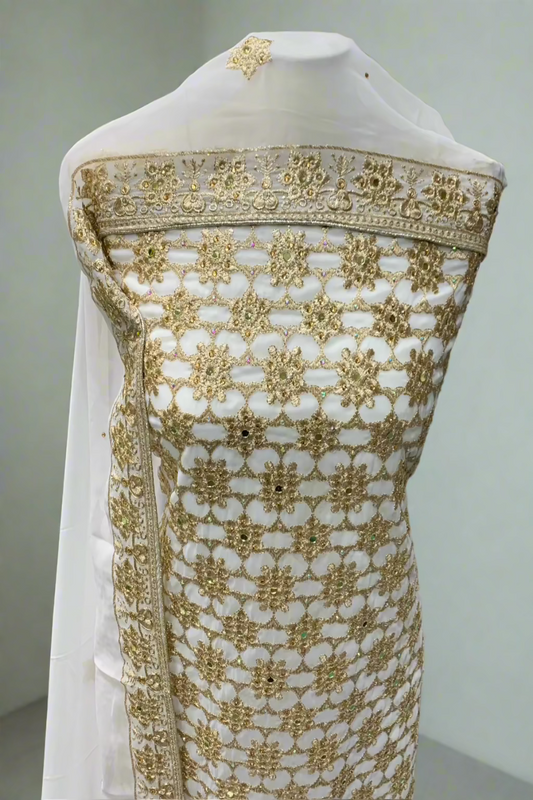 5778 Floral Gold Embroidery Shimmer 4pc Unstitched Suit