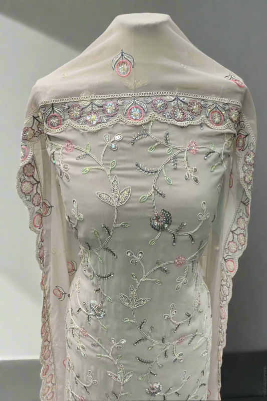 366 Floral Embroidery 4pc Unstitched Chiffon Suit with Diamante