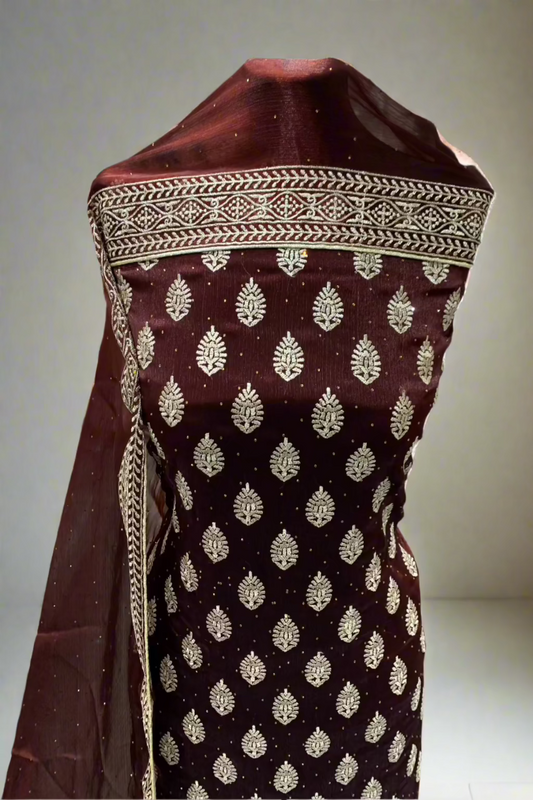 5762 Unstitched Ladies Lurex Embroidery Georgette 4pc Suit
