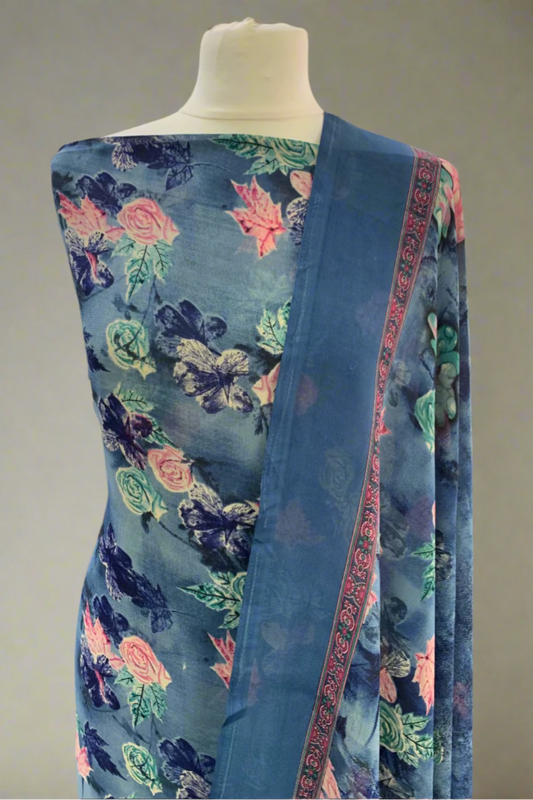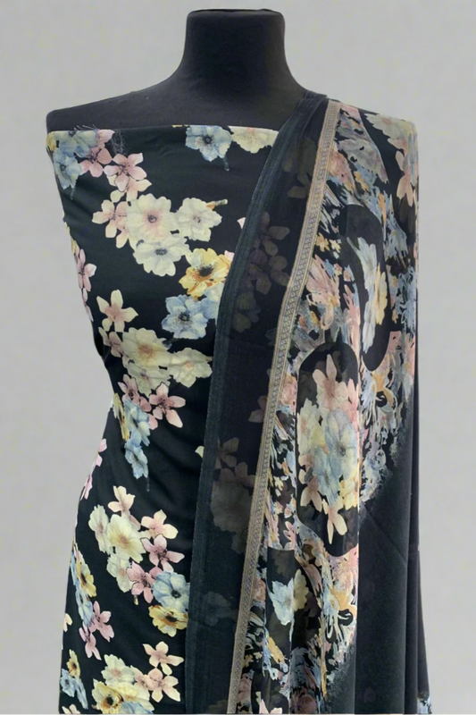 326 Flower Print 4pc Unstitched Chiffon Suit