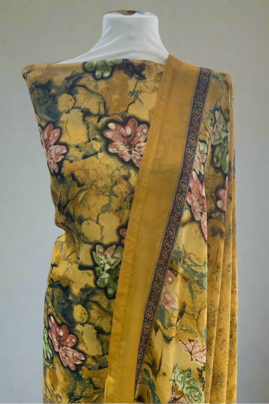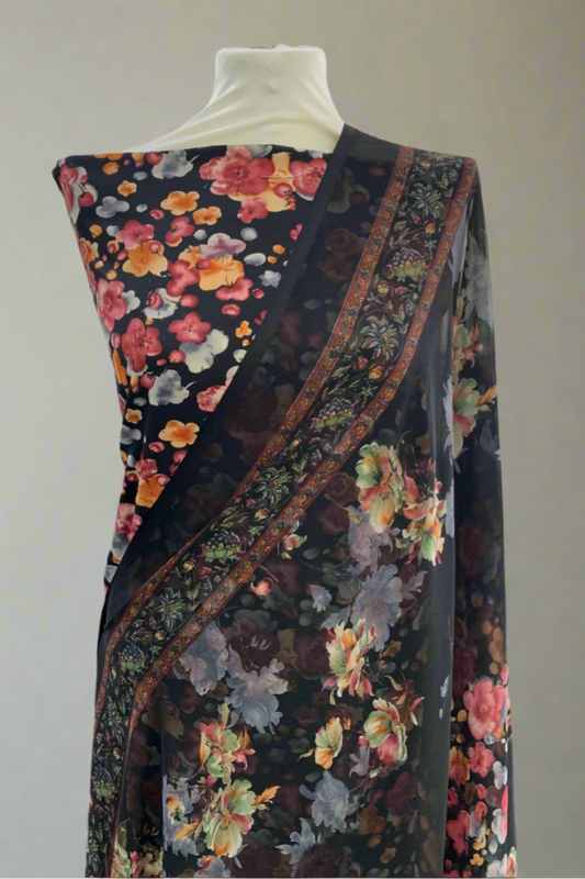 327 Flower Print 4pc Unstitched Chiffon Suit