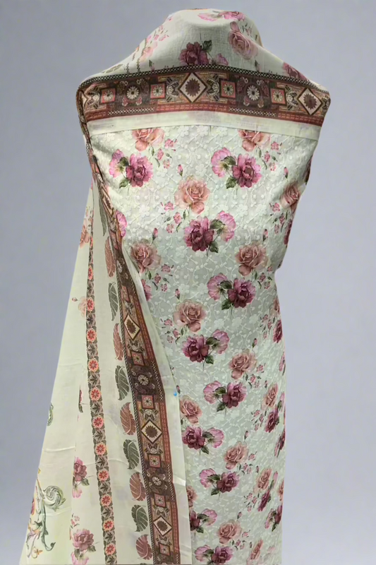 9466 Floral Print Embroidery Cotton 3pc Unstitched Suit