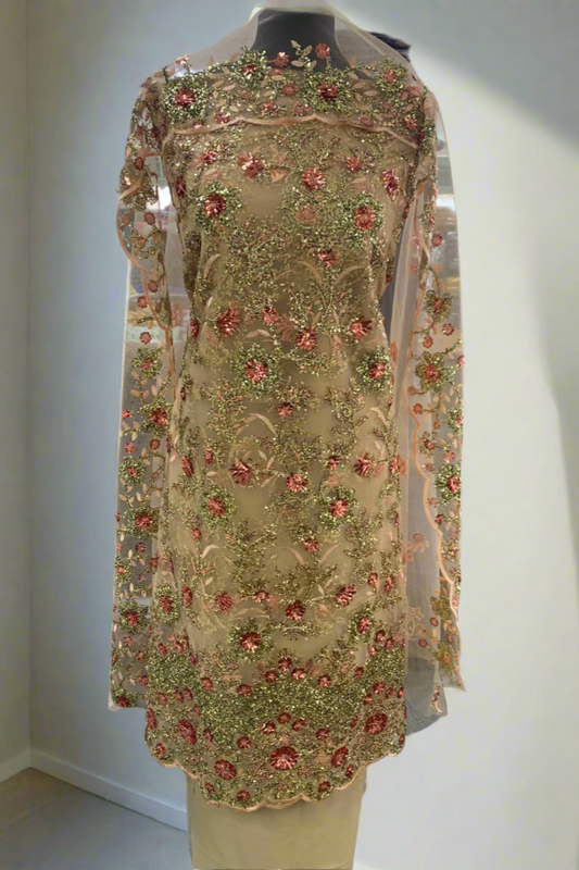 D8 Unstitched Ladies Embroidered Net 4pc Suit