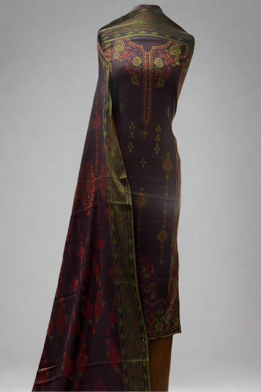 405 Unstitched Ladies Paisley Print Alpine 3pc Warm Suit
