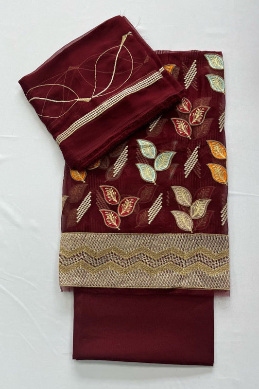 3066 Unstitched Ladies Crinkle Chiffon 4pc Suit Fancy Fashion Embroidered
