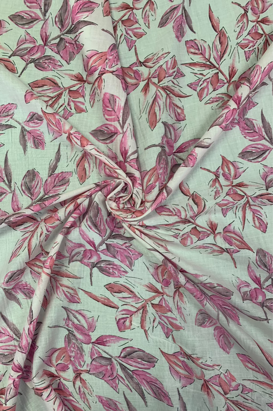 D59 Leaf Print Polycotton Loose Fabric Per Metre