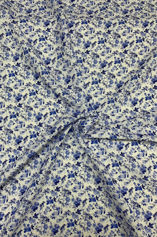 D64 Ditsy Floral Print Ocean Crepe Loose Fabric Per Metre