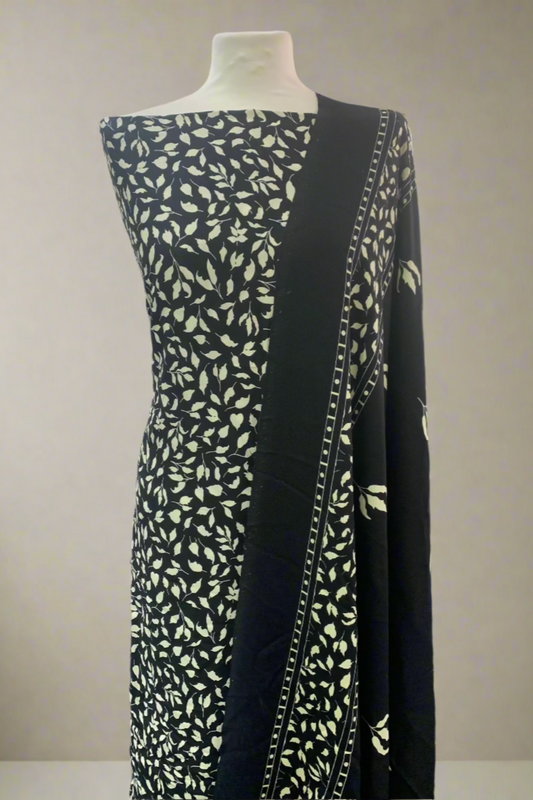 D107 Unstitched Ditsy Leaf Print Viscose 3pc Suit