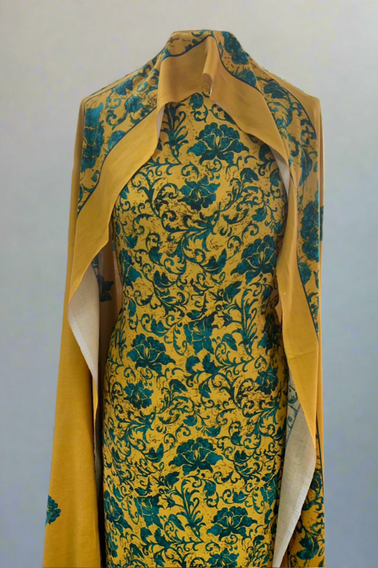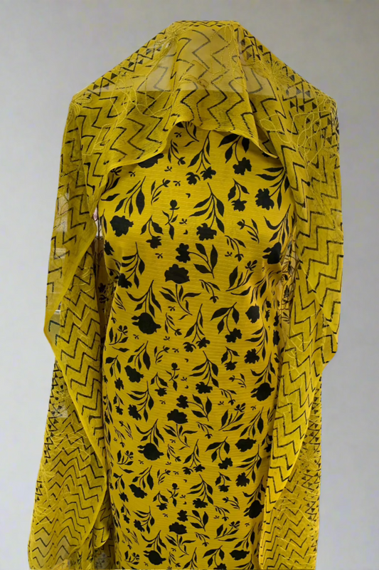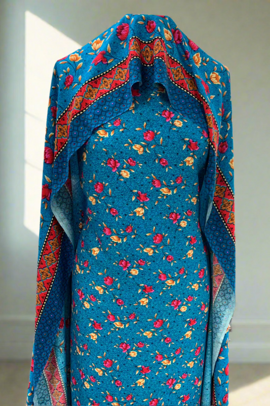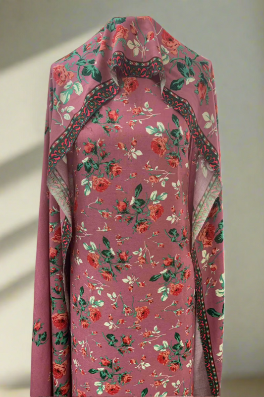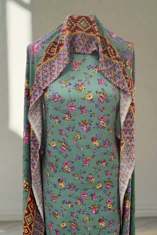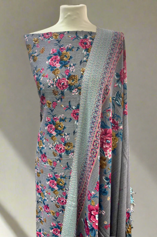 D108 Unstitched Flower Print Viscose 3pc Suit