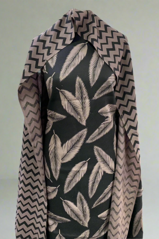 D115 Unstitched Large Leaf Print Viscose 3pc Suit
