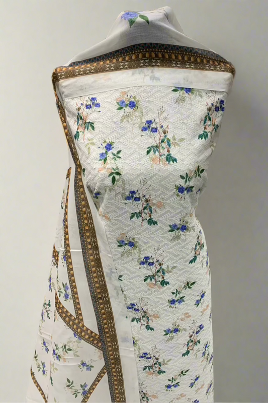 114 Floral Printed Cotton 3pc Unstitched Suit