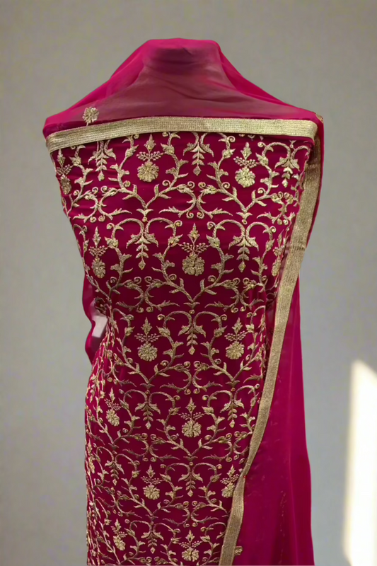 5957 Gold Embroidery & Gems Chiffon 4pc Unstitched Fancy Suit