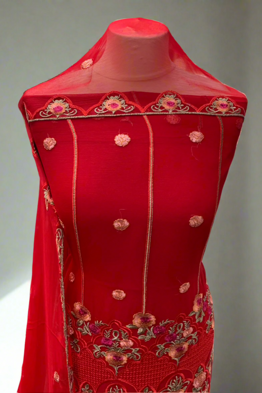 2682 Floral Embroidery Chiffon 4pc Unstitched Fancy Suit