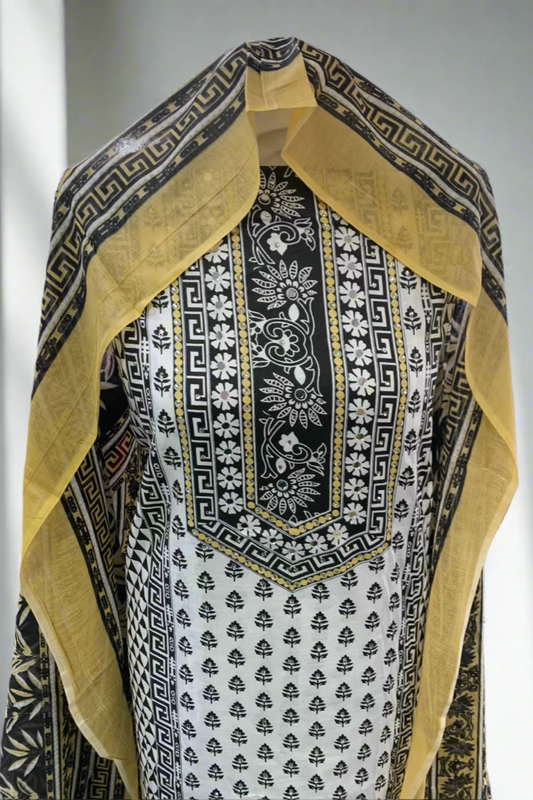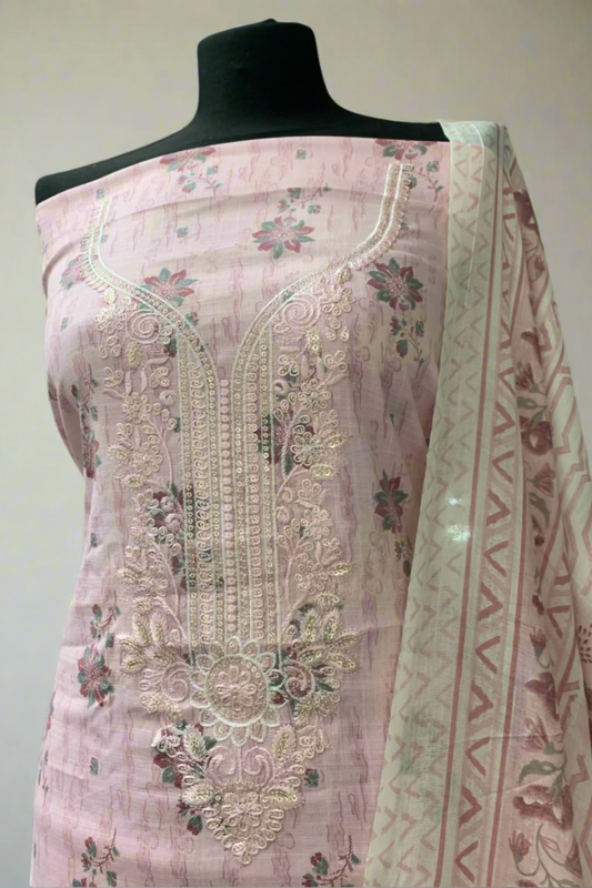 9924 Floral Print Embroidery Neckline Cotton 3pc Unstitched Suit