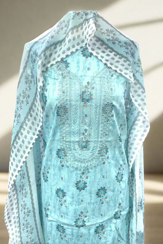 10762 Floral Chikenkari Cotton 3pc Unstitched Suit