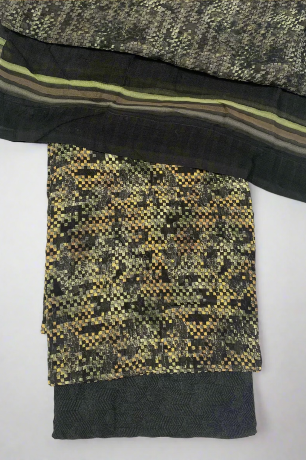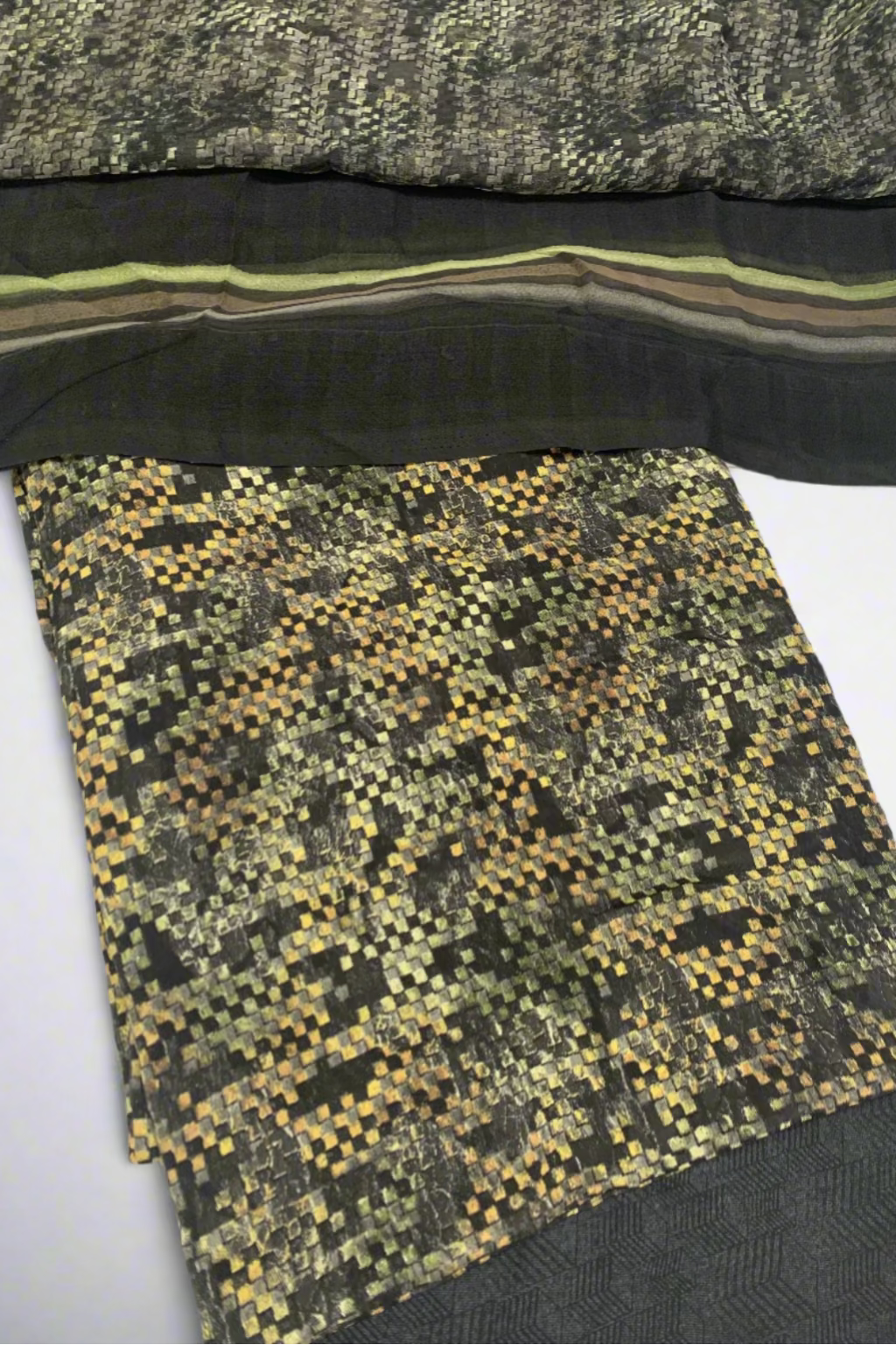 13396 Abstract Checkered Print 3pc Unstitched Crepe Suit