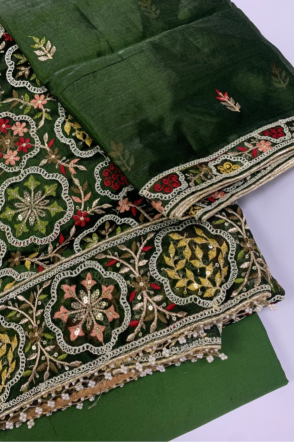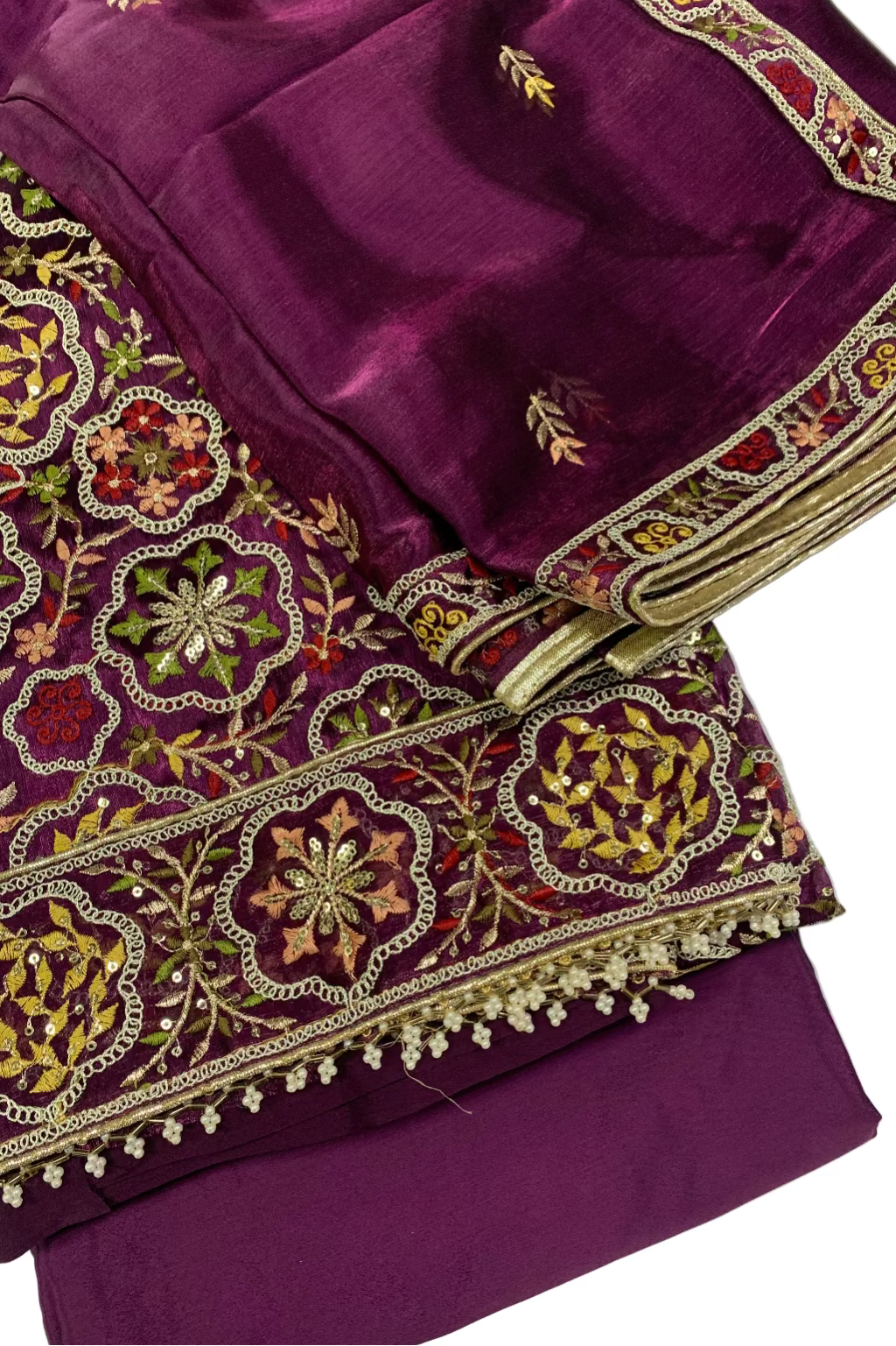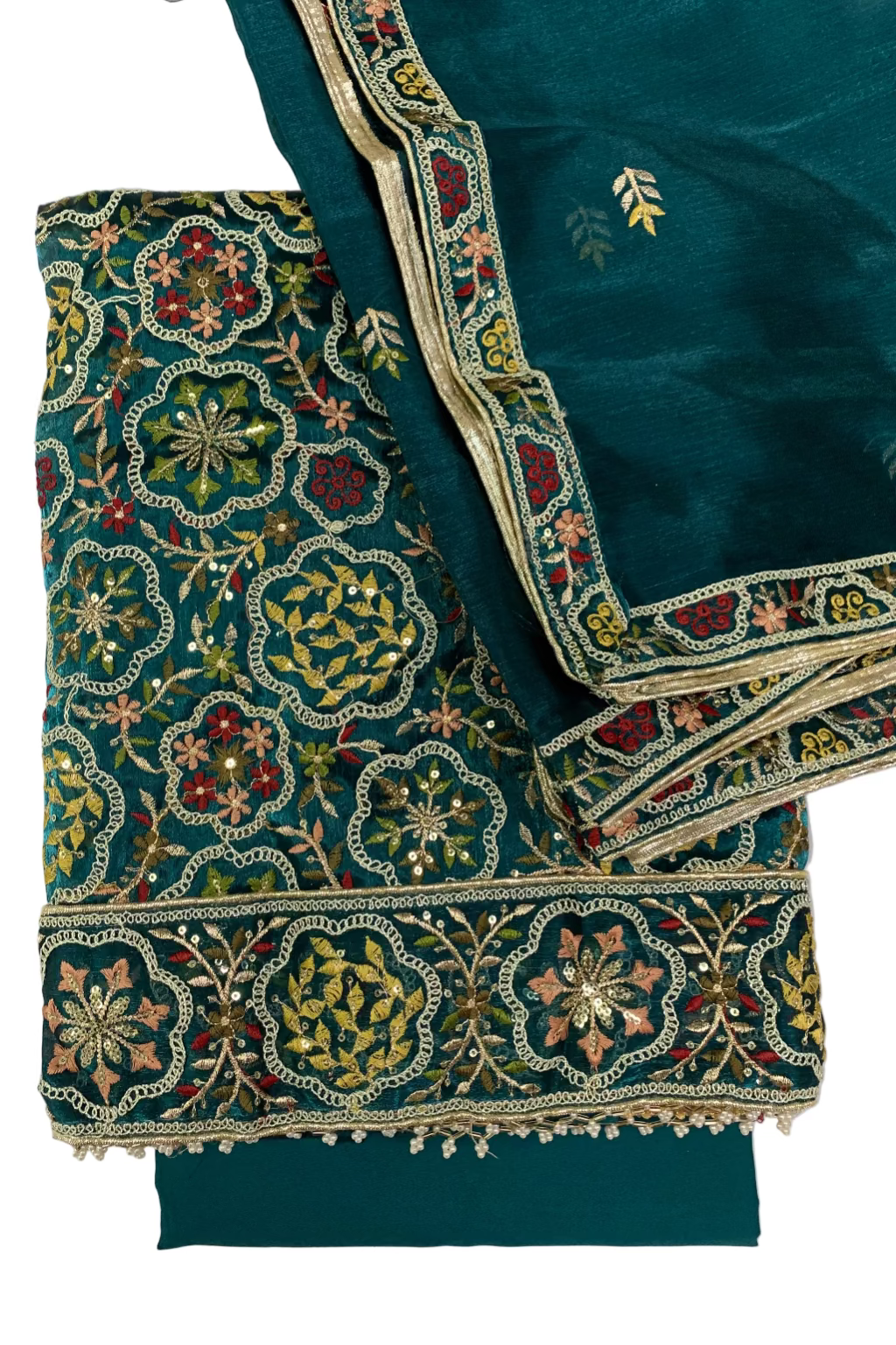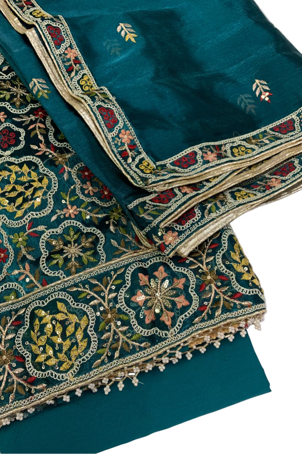 2076 Embroidery & Pearls 4pc Organza Party Suit
