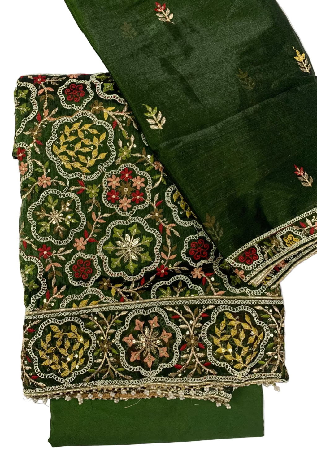 Fabrics/Suits with embroidery/beading/sequins are delicate and these need to be worn and treated with care. Occasionally any embellishments may be displaced due to the nature of the fabric. This is normal and the fabric is not to be treated as faulty.
