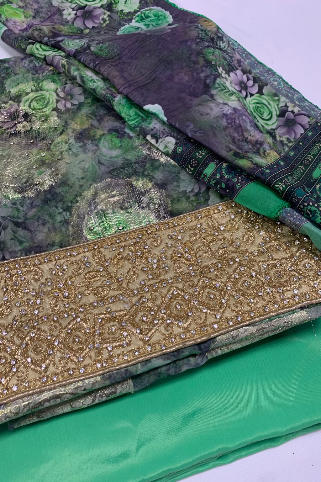 700 Floral Print 4pc Unstitched Chiffon Suit with Embellishments