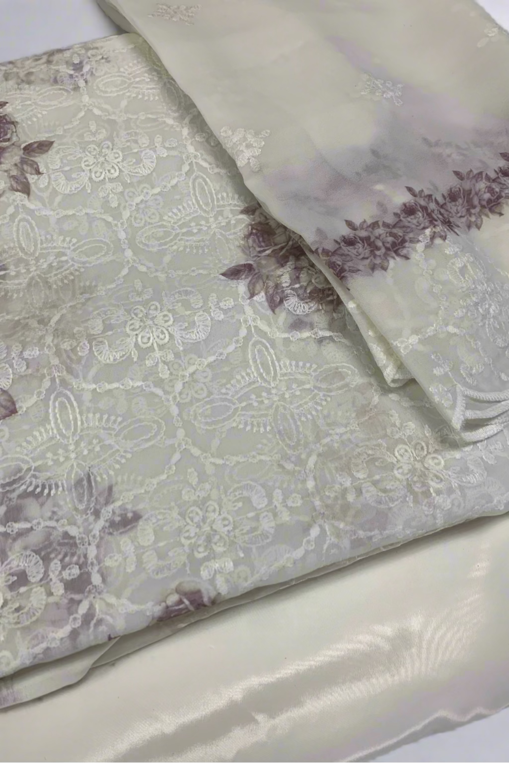 711 Embroidery Floral Print 4pc Unstitched Georgette Suit